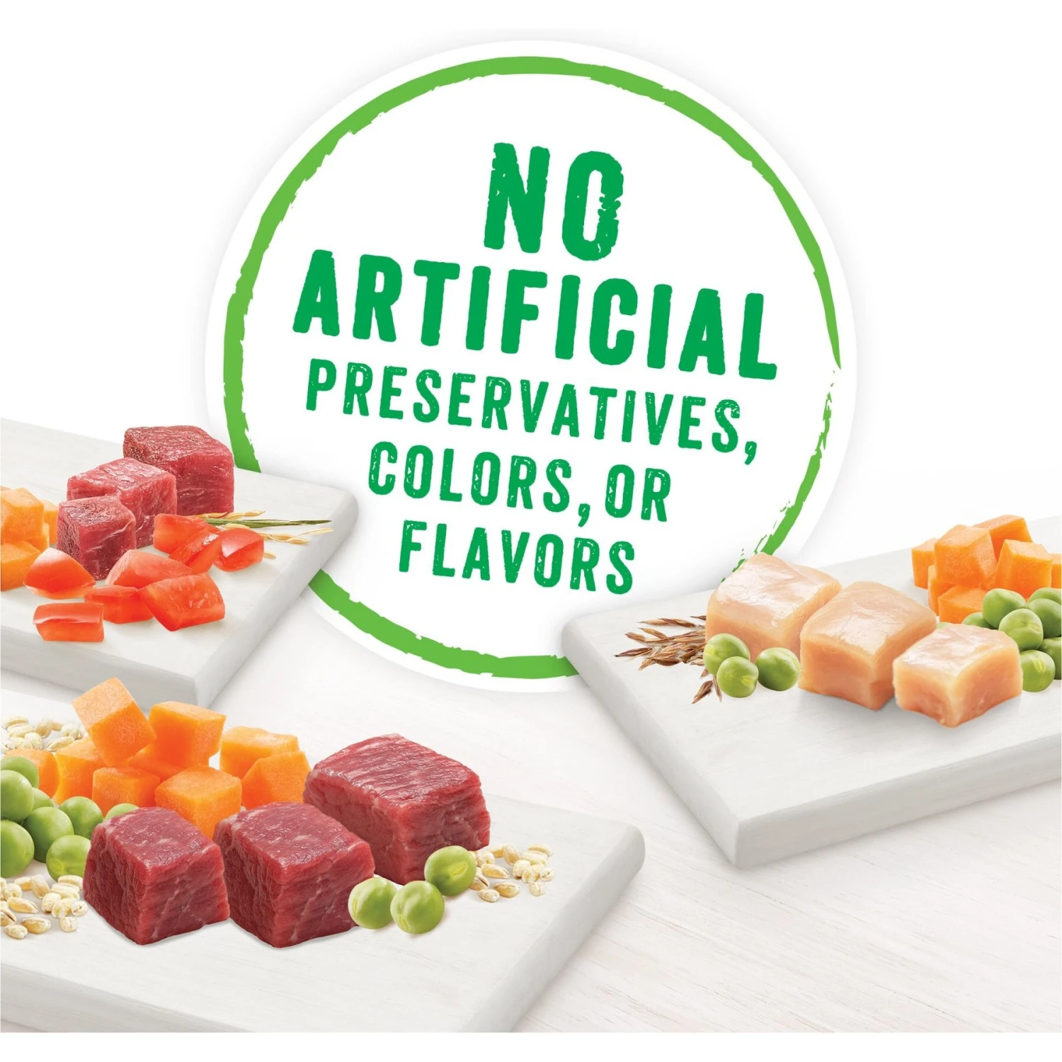- Premium dog food variety pack lets dogs choose from tasty recipes made with real chicken, beef or lamb—plus real veggies and grains you can see!