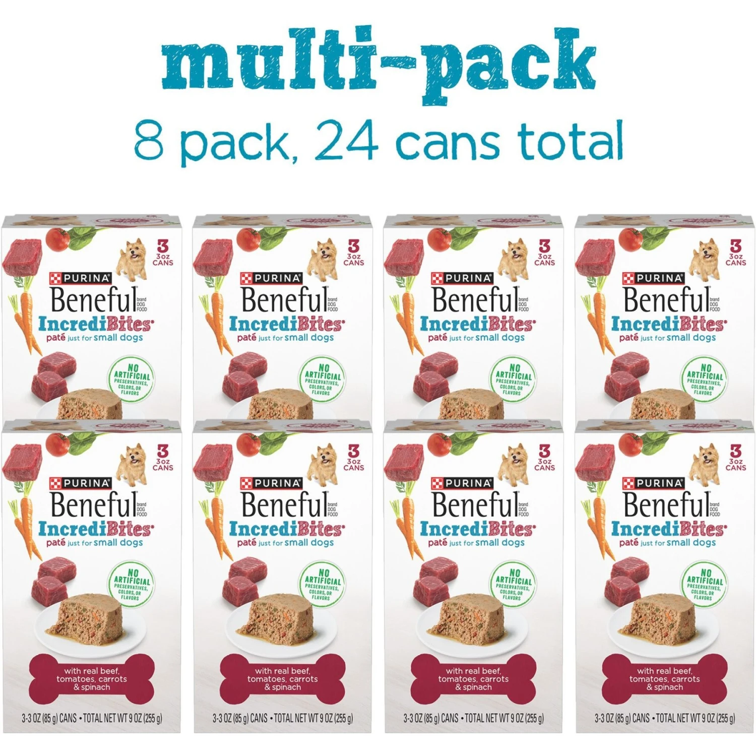 Purina Beneful IncrediBites Pate With Real Beef, Tomatoes, Carrots & Spinach Wet Dog Food, 3-oz Can, Case Of 24