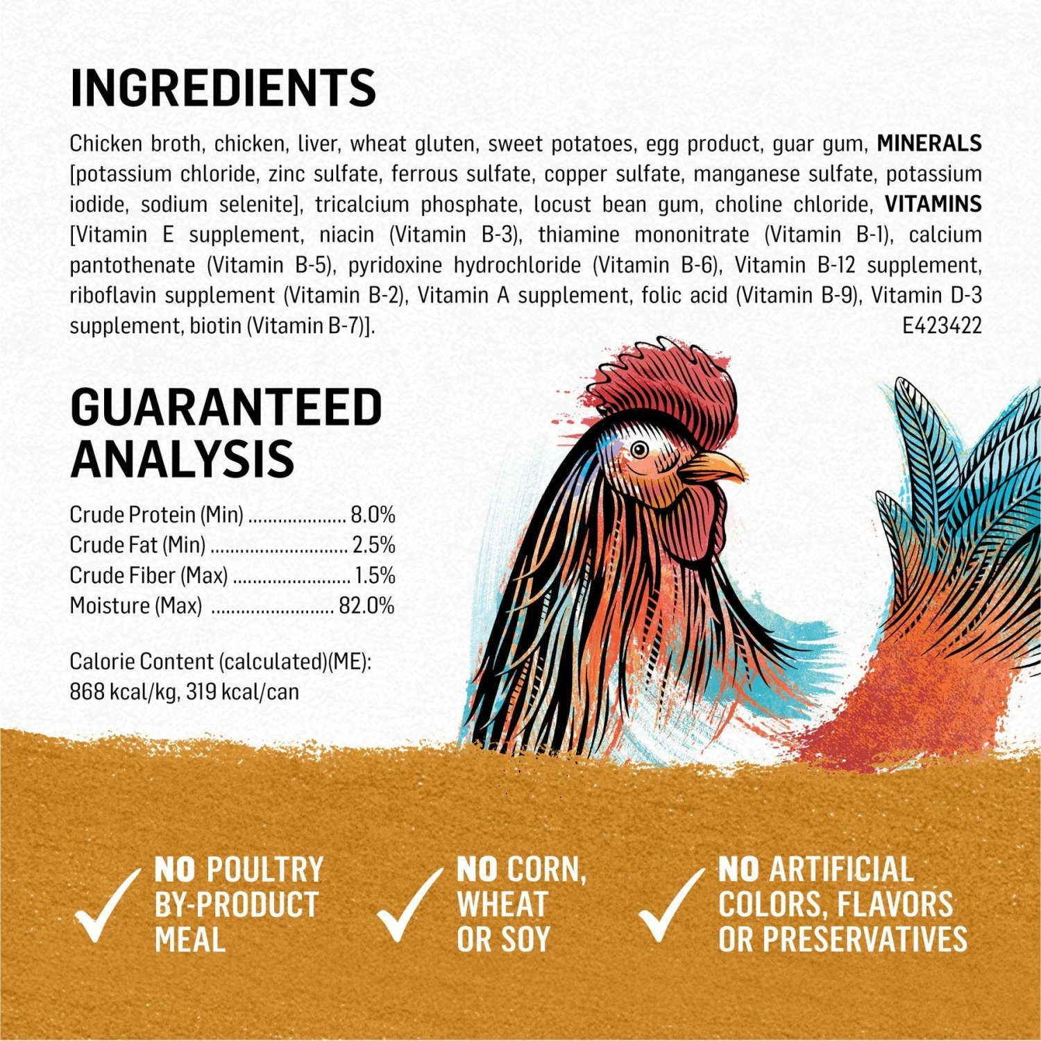 - Cage-free chicken raised without steroids or hormones plus yummy sweet potato and delicious gravy make for a su-paw tasty meal.