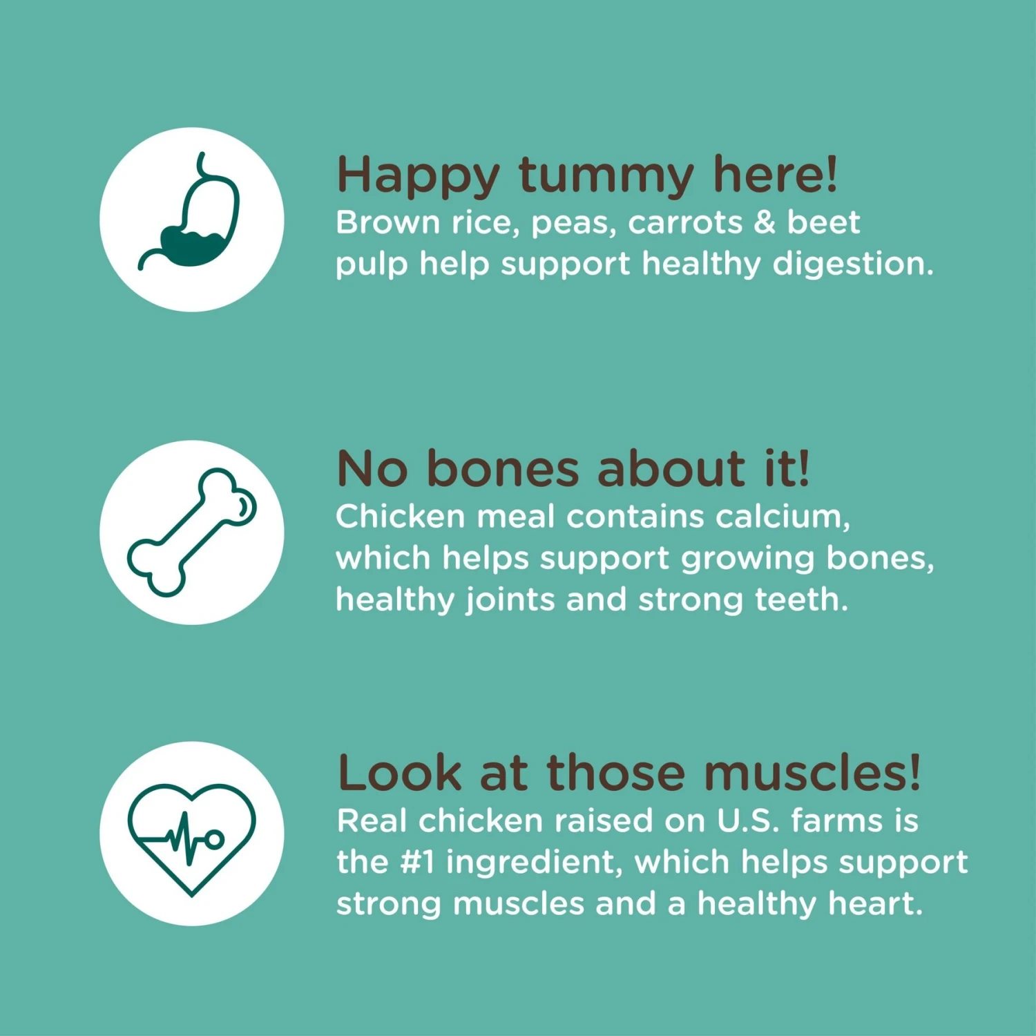 - Features real chicken as the #1 ingredient to support healthy organs and lean muscle mass.