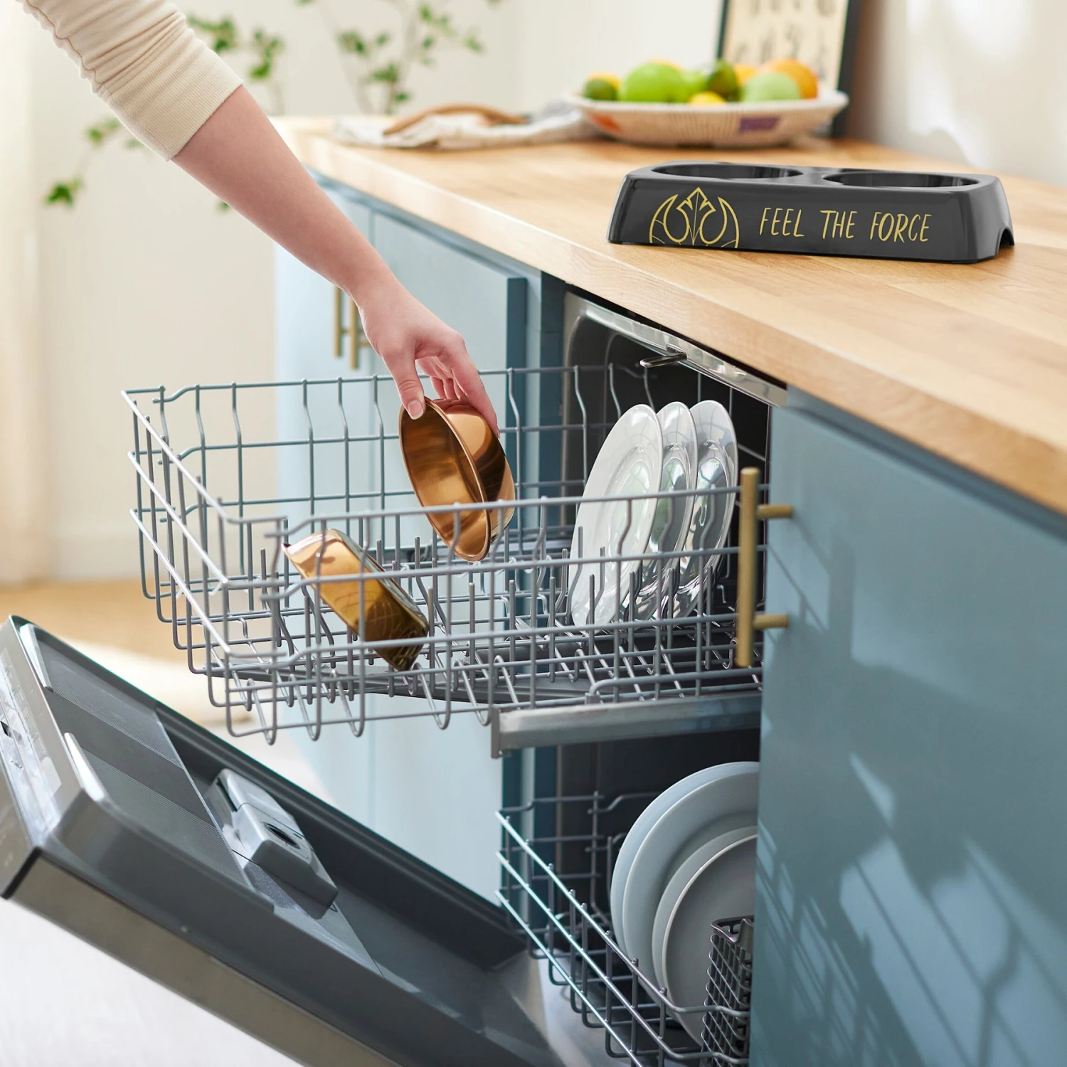 - This STAR WARS melamine base comes in black with an image of the Rebel icon that will elevate your dog’s dining experience, with two removable stainless-steel bowls. Matching treat jar also available.