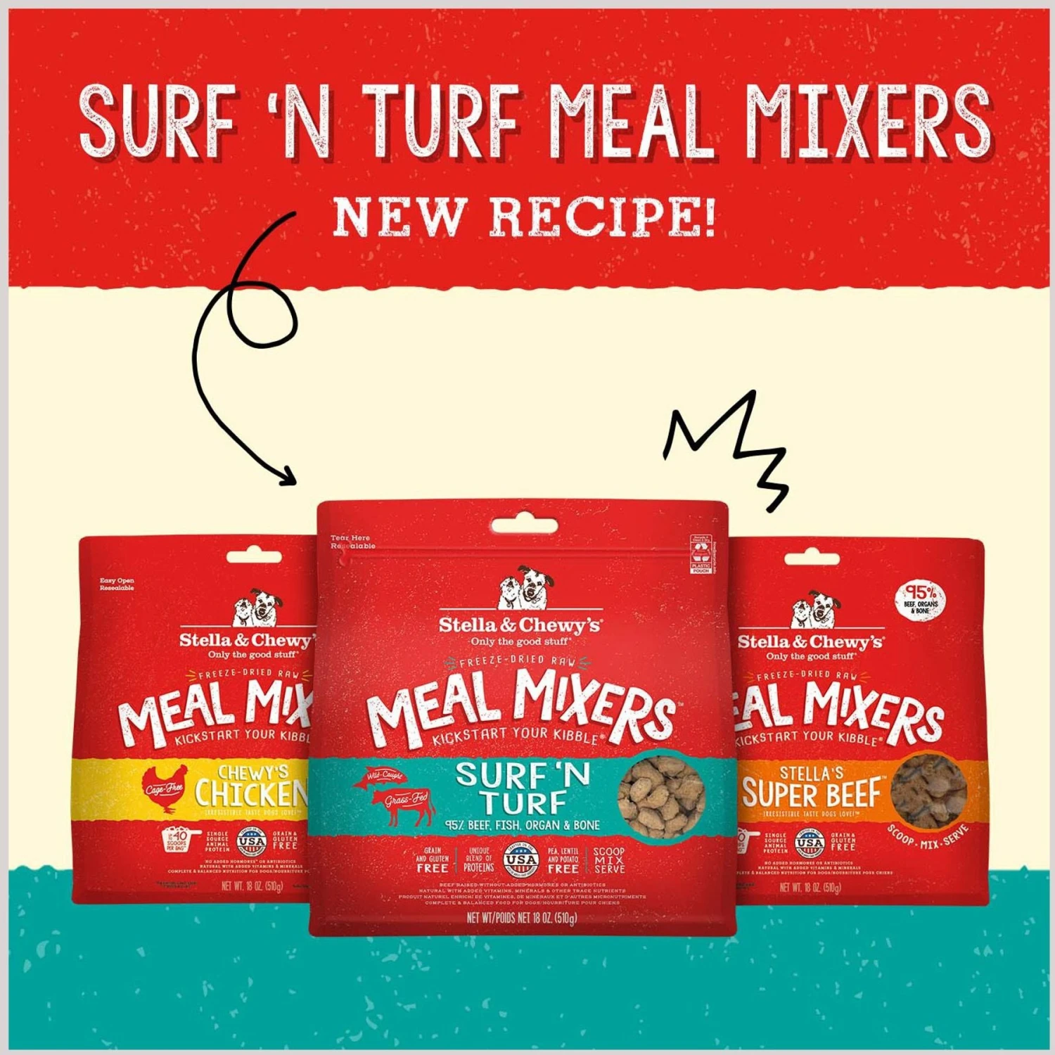 Stella & Chewy’s Freeze-Dried Raw Surf & Turf Meal Mixer Grain-Free Protein Rich Recipe Dog Food Topper