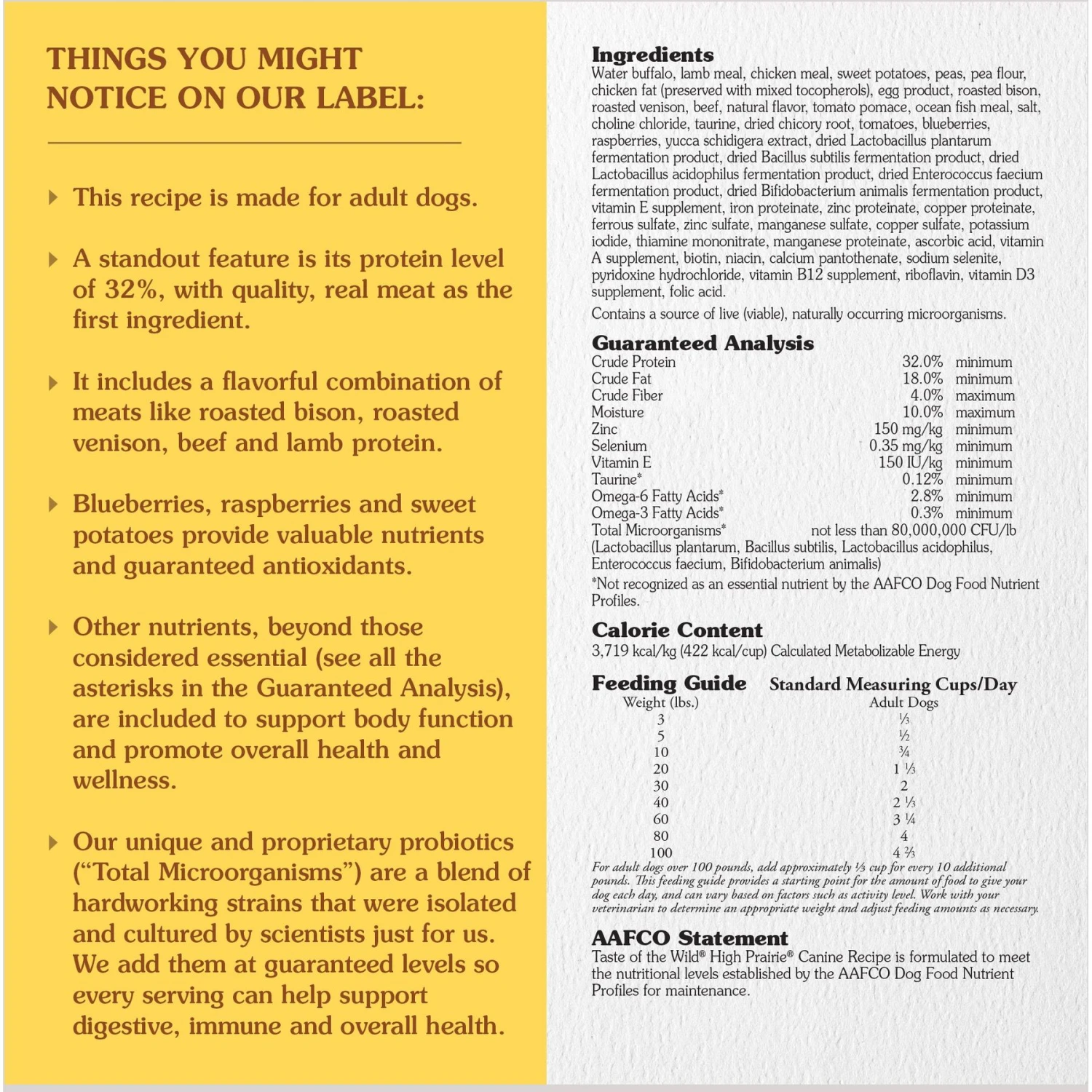 - This roasted bison and venison dry dog food is crafted with real meat as the #1 ingredient and is high in protein (32%) to help support bones, joints and lean muscles.