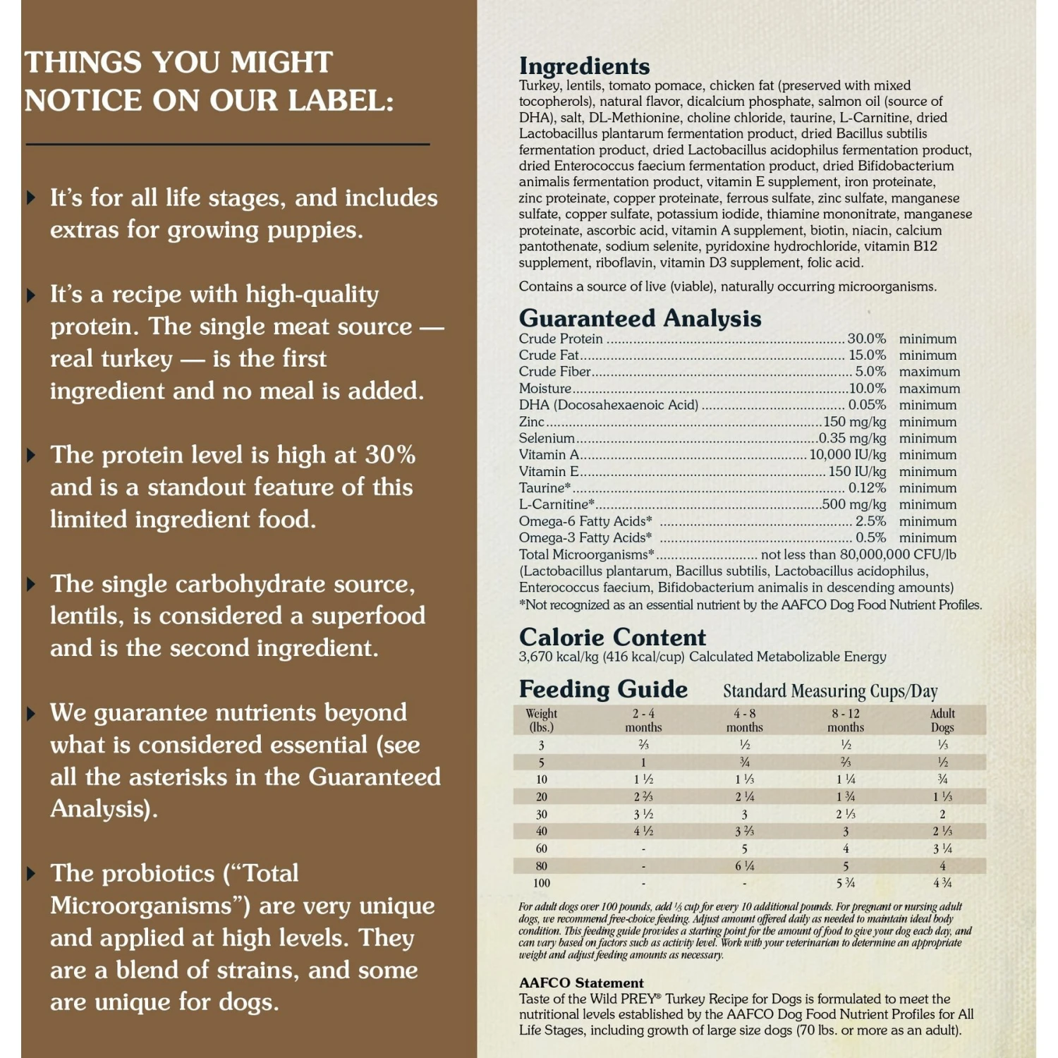 Taste Of The Wild PREY Turkey Formula Limited Ingredient Recipe Dry Dog Food
