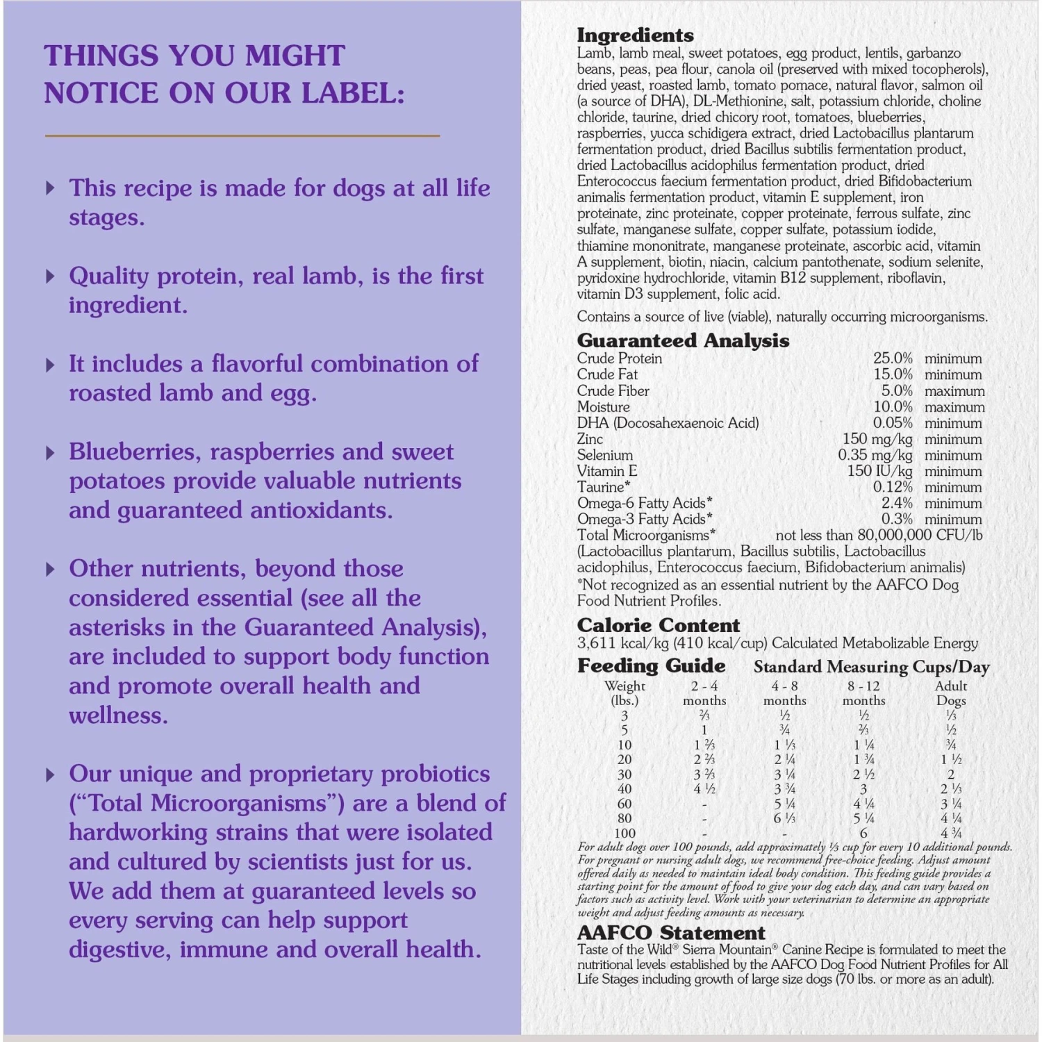 - This roasted lamb dry dog food is crafted with real lamb as the #1 ingredient and is high in protein (25%) to help support bones, joints and lean muscles.