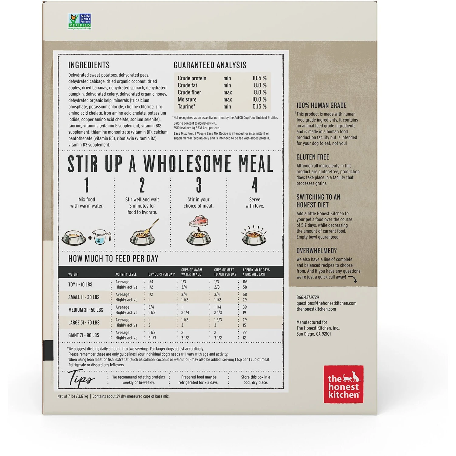 - This fruit and vegetable base mix contains gently dehydrated ingredients and is designed to be mixed with meat or fish, based on your pup’s protein restrictions.
