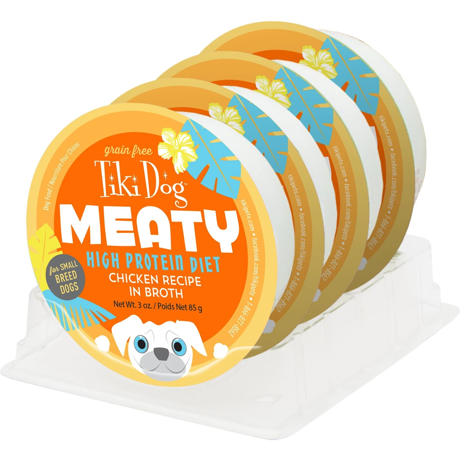 Tiki Dog Meaty High Protein Diet Chicken Recipe In Broth Grain-Free Wet Dog Food, 3-oz Cup, Case Of 4