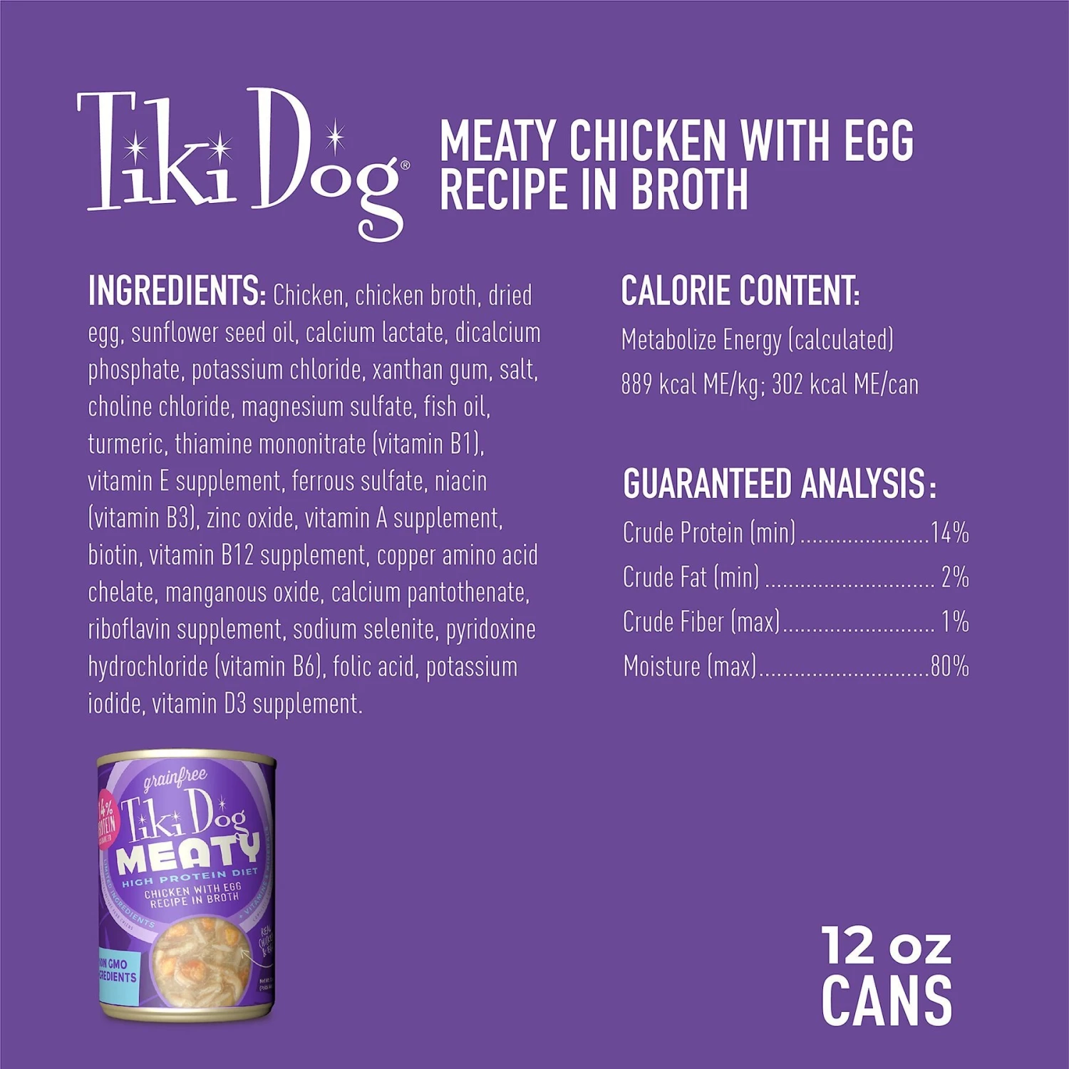 Tiki Dog Meaty Whole Foods Grain-Free Chicken & Egg Shredded Canned Dog Food, 12-oz, Case Of 8