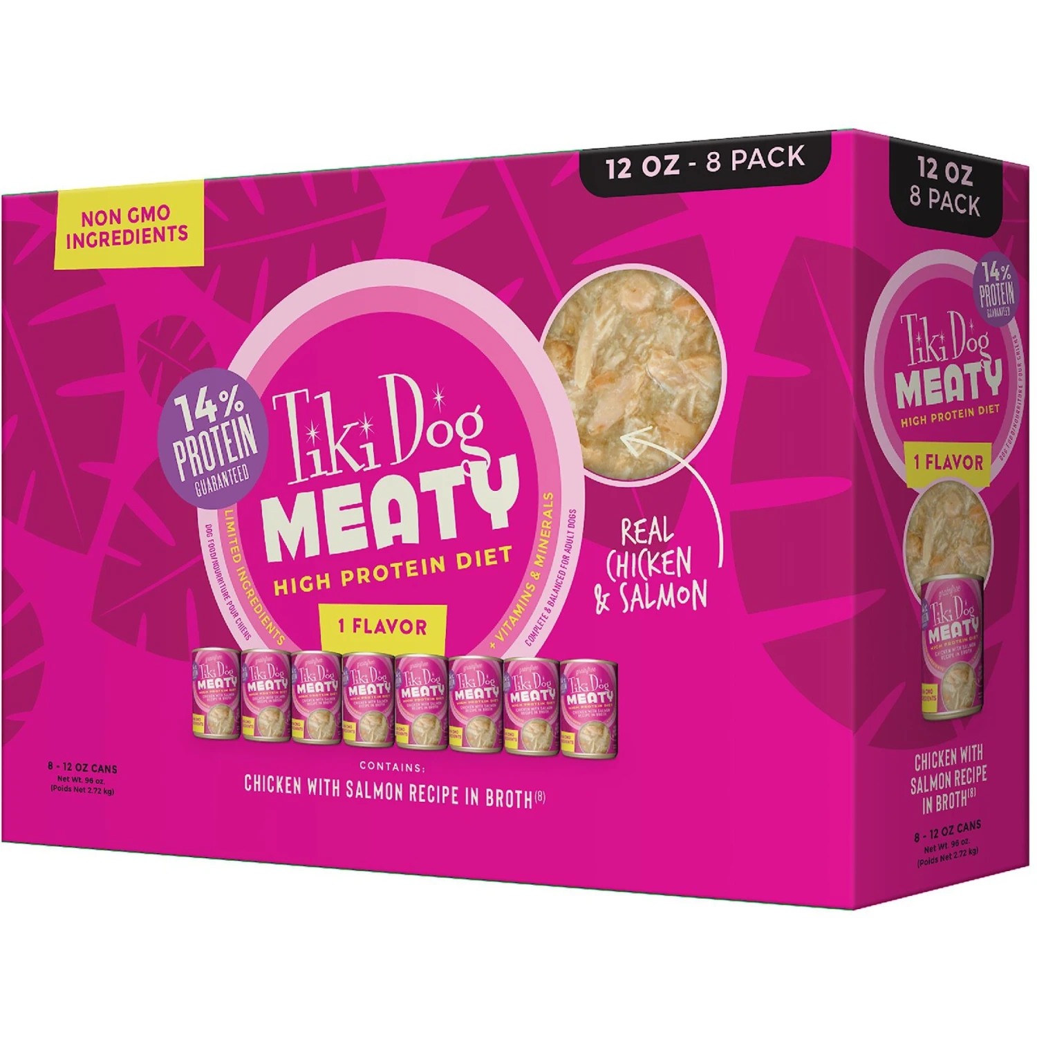 Tiki Dog Meaty Whole Foods Grain-Free Chicken & Salmon Shredded Canned Dog Food, 12-oz, Case Of 8