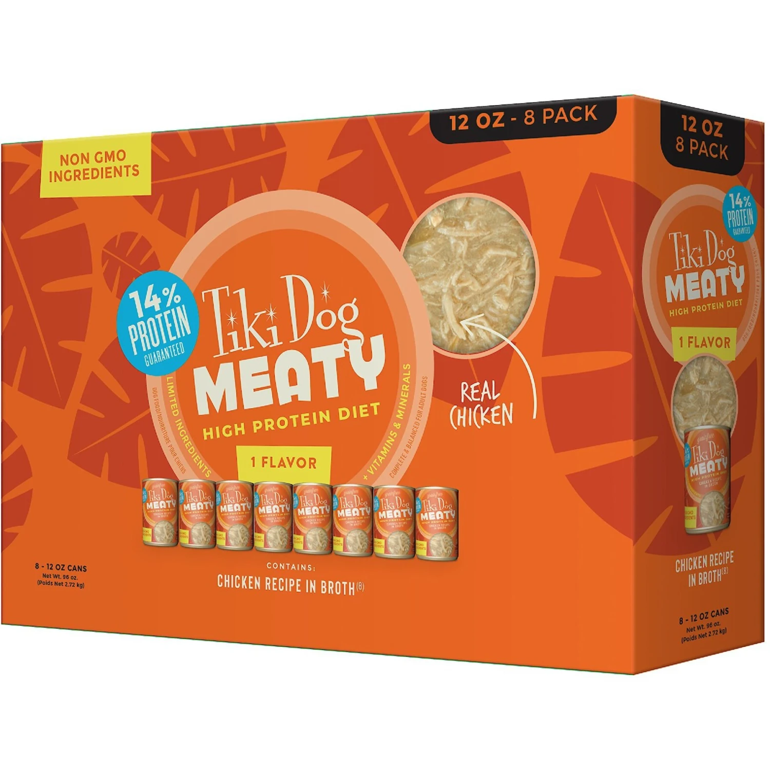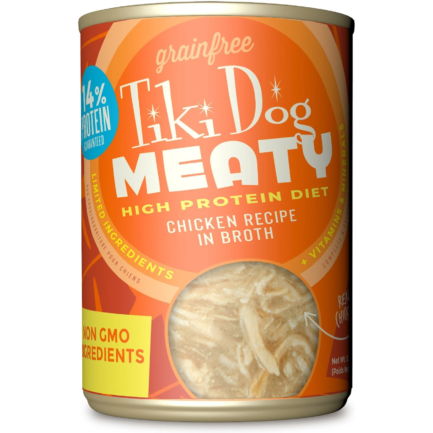 Tiki Dog Meaty Whole Foods Grain-Free Chicken Shredded Canned Dog Food, 12-oz, Case Of 8