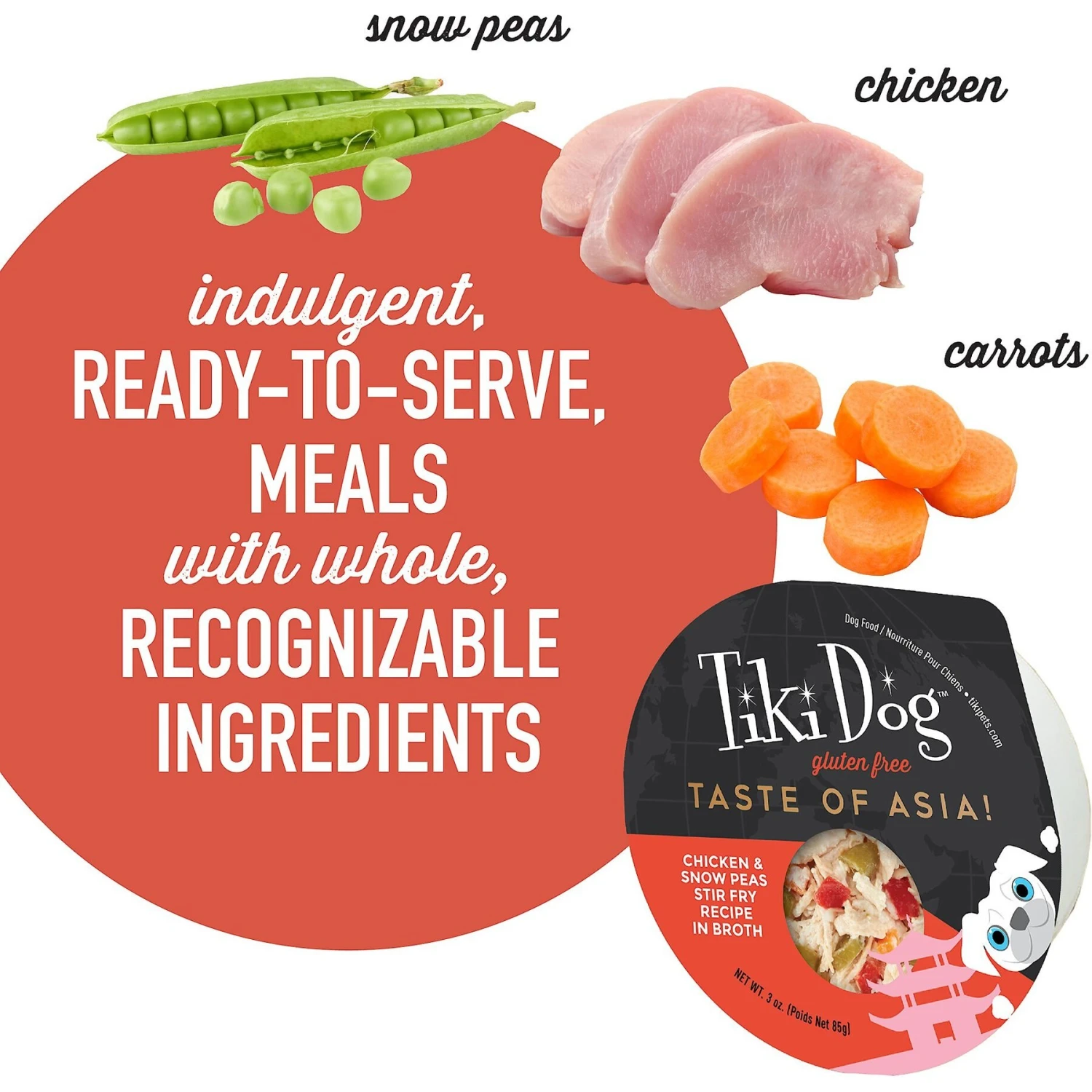 Tiki Dog Taste Of Asia Chicken & Snow Peas Stir Fry Recipe In Broth Gluten-Free Wet Dog Food, 3-oz Cup, Case Of 4