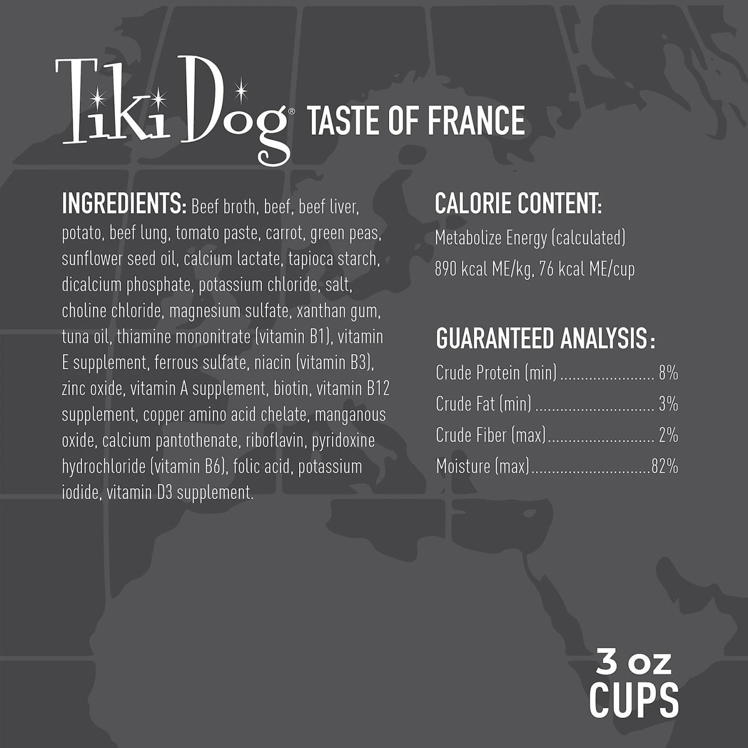 Tiki Dog Taste Of France Beef, Potatoes & Burgundy Recipe In Broth Grain-Free Wet Dog Food, 3-oz Cup, Case Of 4