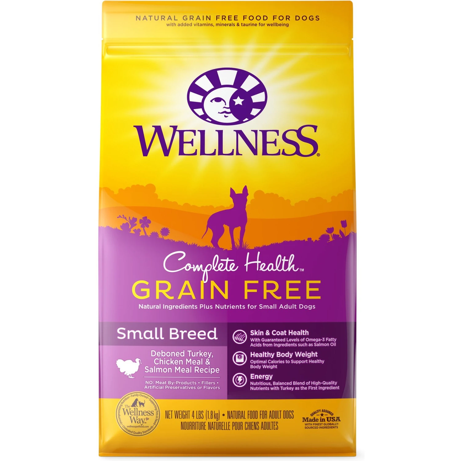 Wellness Grain-Free Complete Health Small Breed Adult Deboned Turkey, Chicken Meal & Salmon Meal Recipe Dry Dog Food