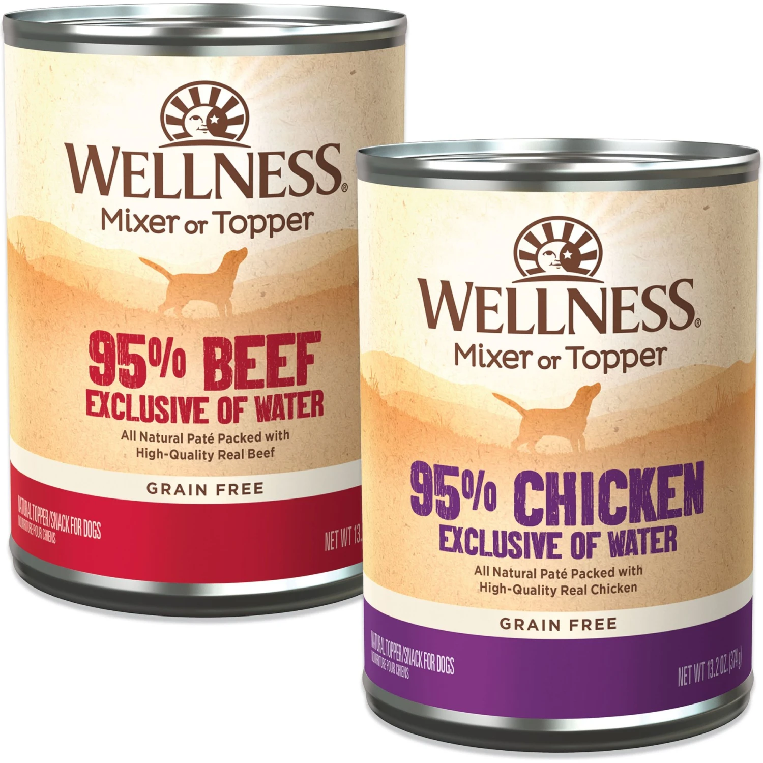 Wellness Ninety-Five Percent Beef Grain-Free Canned Dog Food Topper & Wellness Ninety-Five Percent Chicken Grain-Free Natural Canned Dog Food