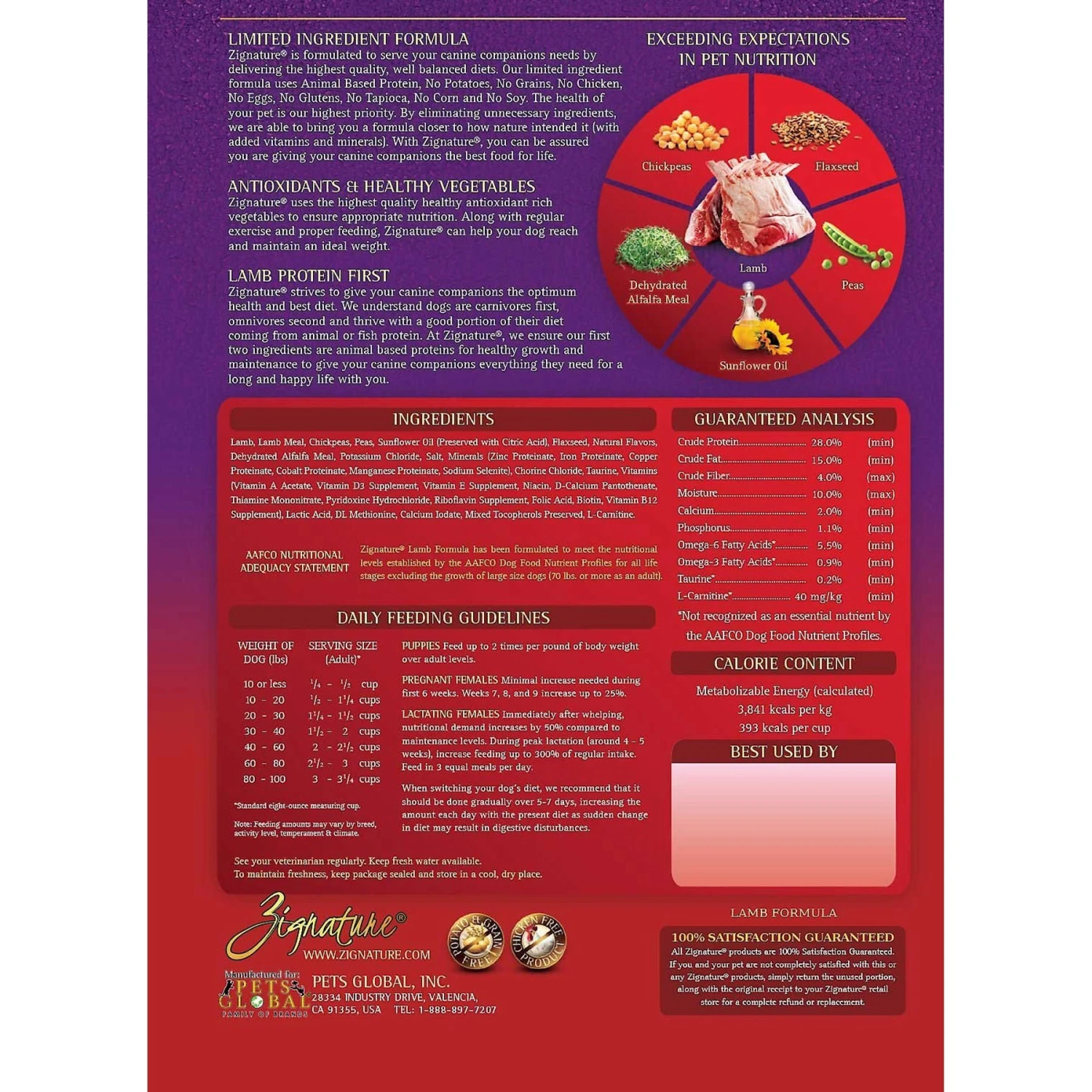 Fill your best friend’s bowl with wholesome nutrition with Zignature Lamb Limited Ingredient Formula Grain-Free Dry Dog Food + Grain-Free Lamb Formula Ziggy Bars Biscuit Dog Treats. Your pup will enjoy a delicious dinner made with real, farm-raised lamb from New Zealand, wholesome peas, chickpeas, and flaxseed. This meat-first recipe offers pups the protein they need to thrive, while Zignature’s limited ingredient recipe throws out troublesome ingredients like chicken, corn, wheat, soy, and potatoes, creating peak hypoallergenic, low-glycemic nutrition. Plus, the Ziggy bars are great for sensitive stomachs, with limited ingredients including pumpkin, green lentils, garbanzo beans and red lentils. Sourced from the farmlands of New Zealand, this lamb is considered to be a complete protein rich in essential nutrients. The bite-sized shape makes these treats great for training.